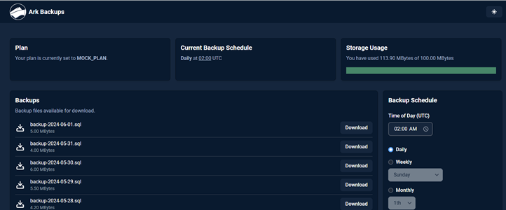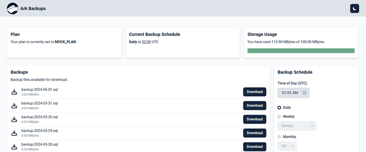 There are no code changes required to use Ark Backups. Simply provide your database connection information along with your desired schedule and you can rest easy.