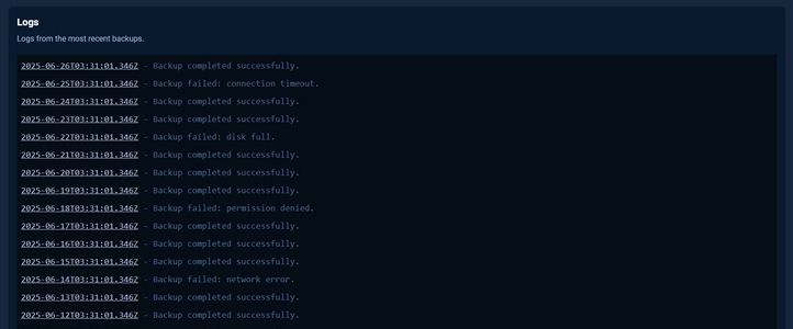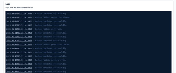 Important log information is saved and displayed on the Ark dashboard both for testing and troubleshooting purposes. Logged output is listed with the backup file name for easy reference.