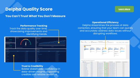 Maintaining high data quality without automation often requires a dedicated team or external data cleansing services. Delpha’s solution minimizes the need for manual data cleanup, reducing labor costs and overhead associated with constant data maintenance.